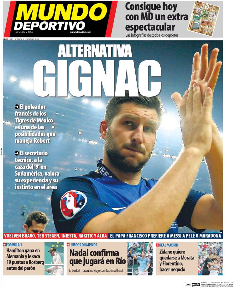 En su afán por rastrear el mercado en busca de un 9 que acepte no jugar absolutamente nunca, EDDACCR (El Director Deportivo Antes Conocido Como Roberto) ha llegado a sondear a un francés que juega en los Tigres de México, pero no es esto, con ser significativo, lo que hemos decidido convertir en lo más destacado de las portadas del día.