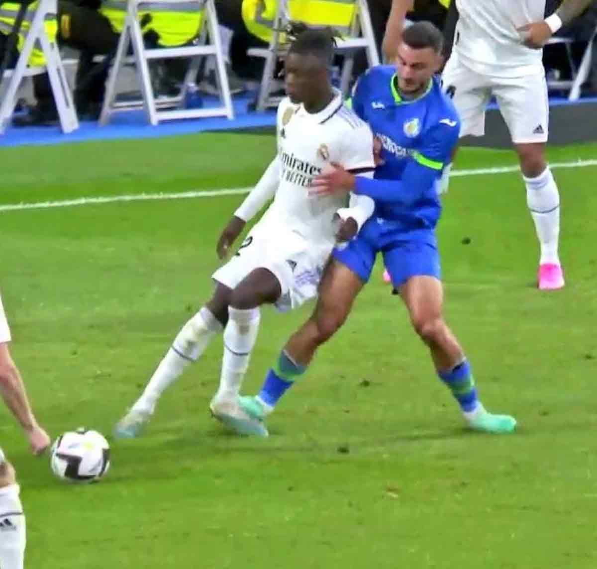 Juan Iglesias, lateral derecho del Getafe, ayer cometió una entrada criminal, con premeditación y alevosía, sobre Camavinga que pudo lesionarlo de gravedad. Iglesias se fue de rositas y Eduardo se marchó lesionado. Martínez Munuera se encontraba a escasos metros de donde se cometió la atrocidad y el VAR ni estaba ni se le esperaba. Ninguna consecuencia para el agresor.
