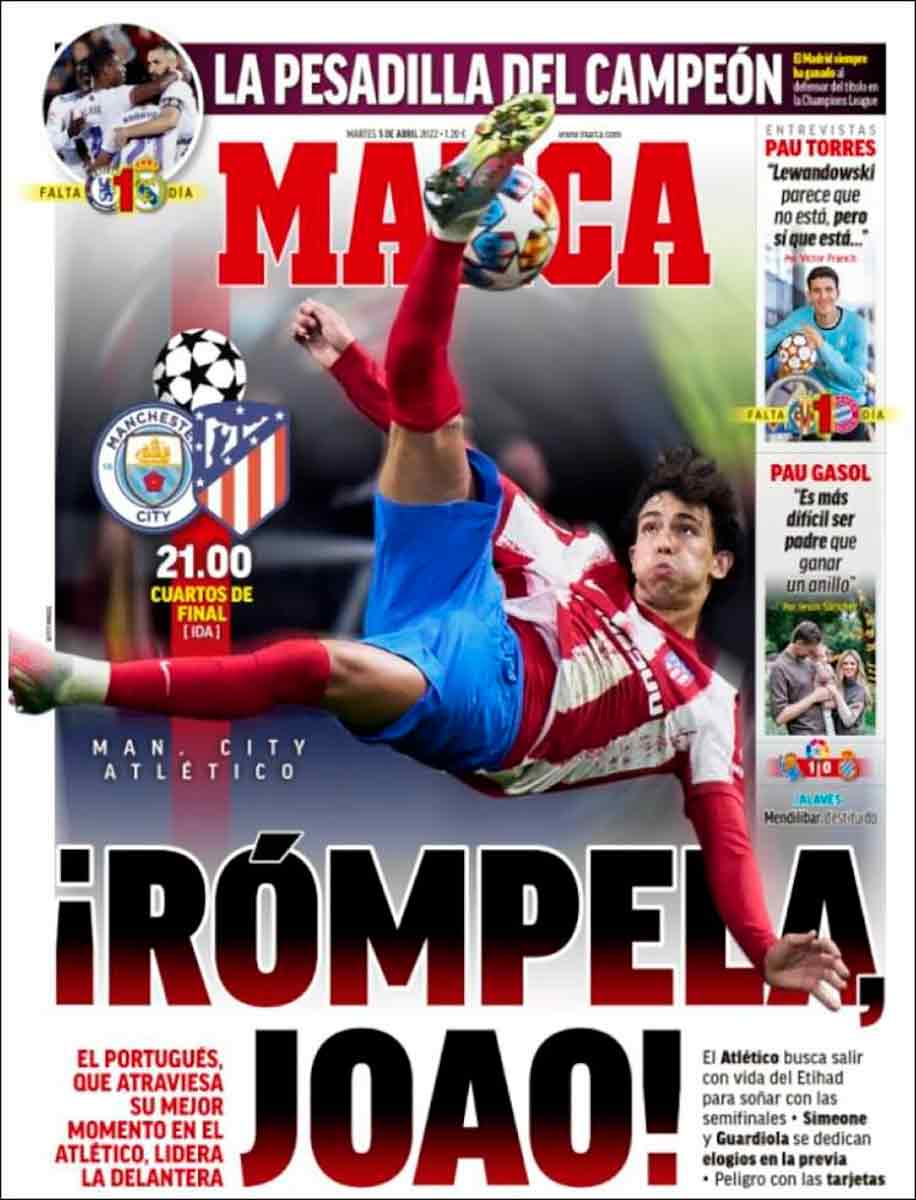Marca abre con una fotografía de Joao Félix con el cuerpo paralelo al suelo y la pierna derecha perpendicular, en posición de remate de tijera, como preparado para cortar con ella el tupido discurso de Guardiola, tejido con lana farisea de la mayor calidad.