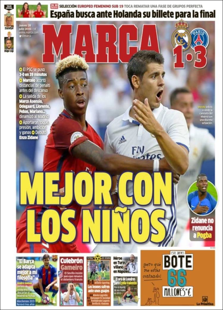 Así que lo dicho, comenzó anoche el nuevo acabose blanco (valga la contradicción), solo salvado por los jóvenes españoles y/o canteranos del equipo. Ya vendrán los Bale y Cristiano a confirmar el Armageddon, y puede que hasta Pogba, por quien habría que desembolsar todos los millones del mundo para dejar en el banquillo a uno de esos jóvenes jugadores españoles y/o canteranos que buena parte de nuestra querida prensa acogerá en su seno como arma arrojadiza. No nos digan que no les suena la historia.