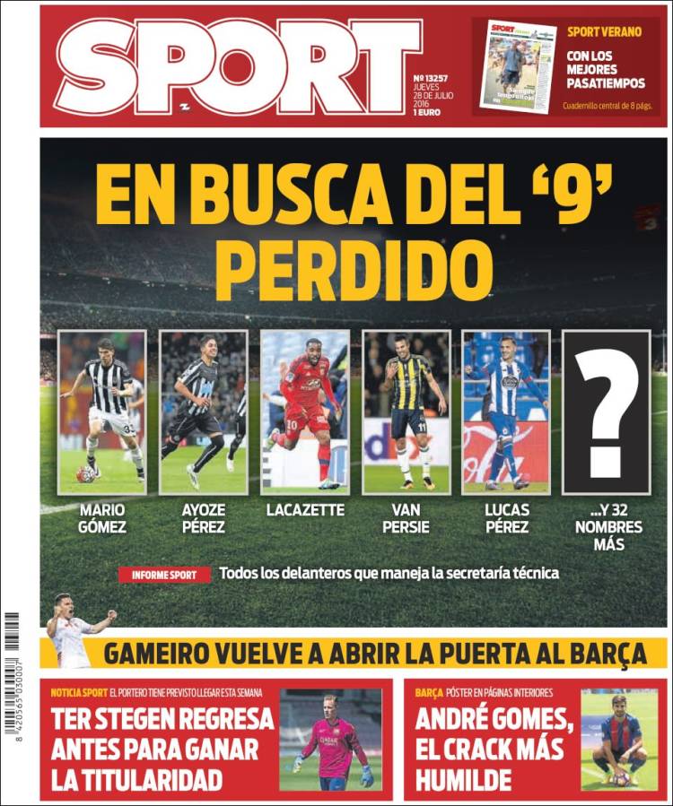 Pero acabemos ya este portanálisis con la prueba definitiva del buen hacer azulgrana frente a la eterna errancia a la que nos condena (recuerden la palabra) el florentinismo. Es Sport quien nos abre los ojos, más o menos como suele hacerlo Relaño. El Madrid no hace sino derrochar millones y entorpecer el progreso de jugadores notables con estrellas de relumbrón, mientras que el Barcelona tiene muy claro su proyecto de cantera, de gastos controlados y de... 32 posibles delanteros en expectativa de fichaje. Eso es proyecto, carajo, y no lo nuestro. Eso es planificación, modelo y Masía, siempre Masía.