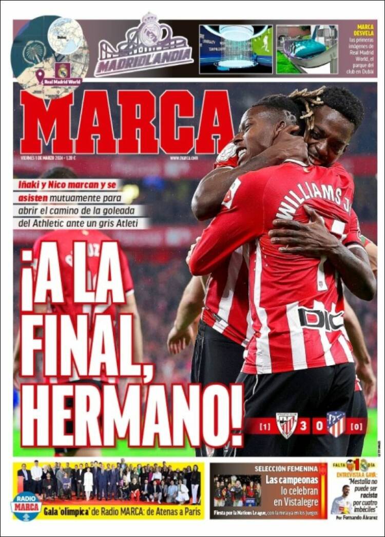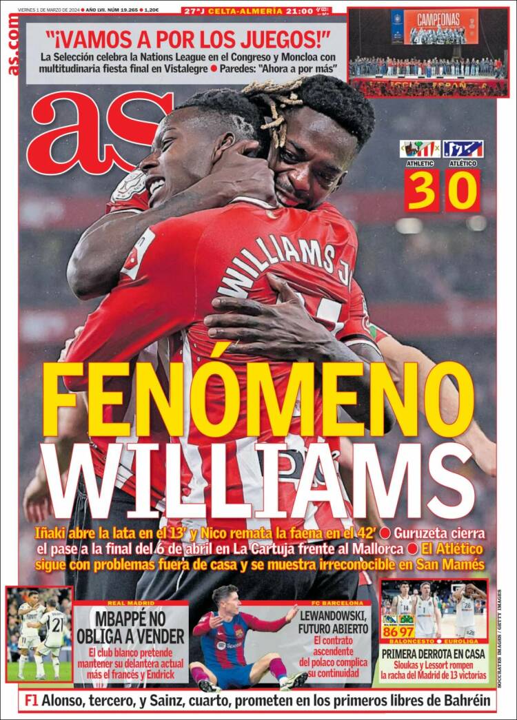 Marca no se queda atrás en falta de piedad y, tras alabar merecidamente a los hermanos Williams, se atreve a calificar al Atleti como "gris".