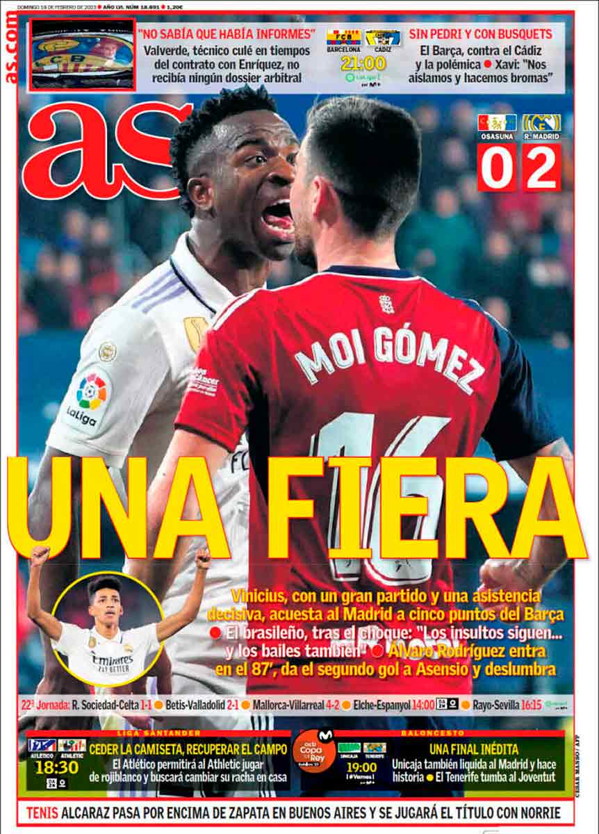 Vamos con el V.A.R, porque al final son los números los que cuentan, las palabras tienen tonos y acentos e intenciones , los números no. Ayer en Pamplona el V.A.R le anulo un gol a Vinicius del cual ha sido imposible, ver una toma lateral con la línea del fuera de juego bien tirada en el frame justo y preciso, tambíen estuvo a punto de amargarle el debut a nuestro canterano, porque después de dar una asistencia, esta no le cuenta al ser anulado el gol, por cierto que pintaza del chaval del Castilla Alvaro Rodríguez, . Con el de ayer son 21GOLES ANULADOS desde que existe el V.A.R., por 10 del Atlético y del Varcelona. No hace falta ser muy listo para darse cuenta que la tendencia es clara, por no hablar de la expulsión perdonada en el minuto 5 a un jugador navarro por un planchazo con los tacos por delante, al tobillo de Camavinga, una roja de manual,
