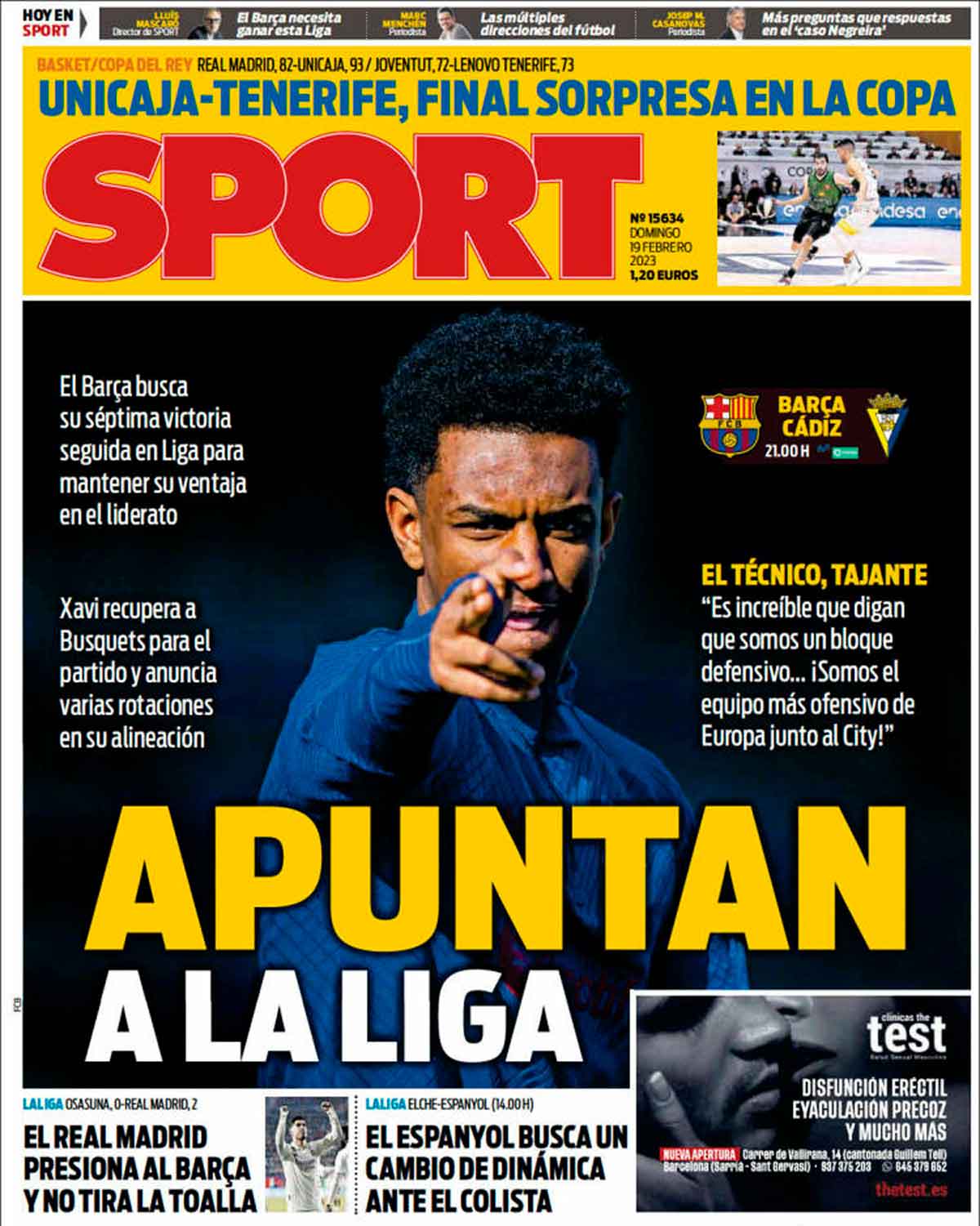 contra Unicaja entre en el canal de la FEB en YouTube para ver el resultado. Como lo hice en el móvil, al maximizar la pantalla no veía el marcador y escuche una catarata de elogios hacia Unicaja por su gran partido, por parte del comentarista. Mosqueado puse la pantalla al formato normal y para mi sorpresa vi que ganábamos de 21 puntos. No lo entendía pero pensé que era para animar al perdedor en esos momentos difíciles.