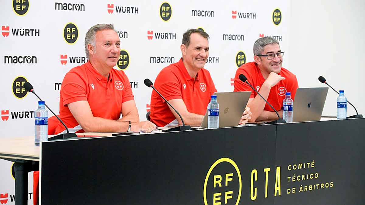 A Rubiales, como además de Motril es abstemio, no lo imaginamos arrellanado en un sofá después de tomarse unos gin-tonics, pero sí repanchigado tras negociar unas comisiones con el capitán en activo de algún equipo de primera división con prebendas para celebrar algún trofeo fuera de España. Lo imaginamos sin gorra y sin perder ripio de lo que Medina Cantalejo —acompañado por Clos Gómez y Undiano Mallenco, porque el CTA es uno y trino— soltó por su boquita de piñón en rueda de prensa durante la habitual reunión con árbitros de primera y segunda previa al inicio de campaña.
