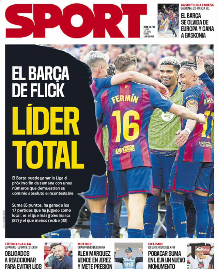 Tiene usted razón. Esta sección se llama Portanálisis. Ocurre, sin embargo, que las portadas del día se centran en la gesta histórica de Sabastian Sawe al pulverizar el récord de maratón y situarlo por debajo de las dos horas, y nos parece que su análisis corresponde más a publicaciones tan respetables como Runner´s World o Corricolari que a esta modesta página web. Bueno, todas las portadas salvo la de Sport, que dedica su primera plana, para variar, a un nuevo ejercicio de onanismo, y en La Galerna nos da pudor comentar públicamente ciertas actividades que sería mejor practicar en la intimidad del cuarto de baño. Se evita uno el riesgo de acabar salpicado, además.