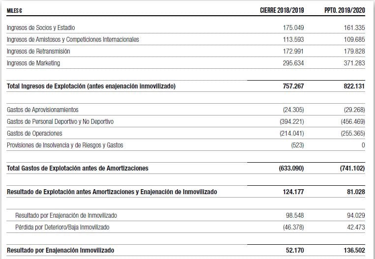 A falta de la decisión definitiva que tomen los organizadores de competiciones nacionales e internacionales, la falta de ingresos y las posibles pérdidas podrían ser mayores o menores. No es lo mismo poder terminar las competiciones, que conllevaría el pago de la totalidad de los derechos televisivos, que se suspendieran definitivamente. Las cuentas demuestran la fortaleza económica del club y es posible que pueda soportar una temporada con pérdidas. El mayor problema podría tenerlo en este supuesto la junta directiva, ya que se podrían ejecutar los avales del 15% del presupuesto ordinario establecidos en la Disposición Adicional Séptima de la Ley del Deporte y en los Estatutos Sociales del propio club.