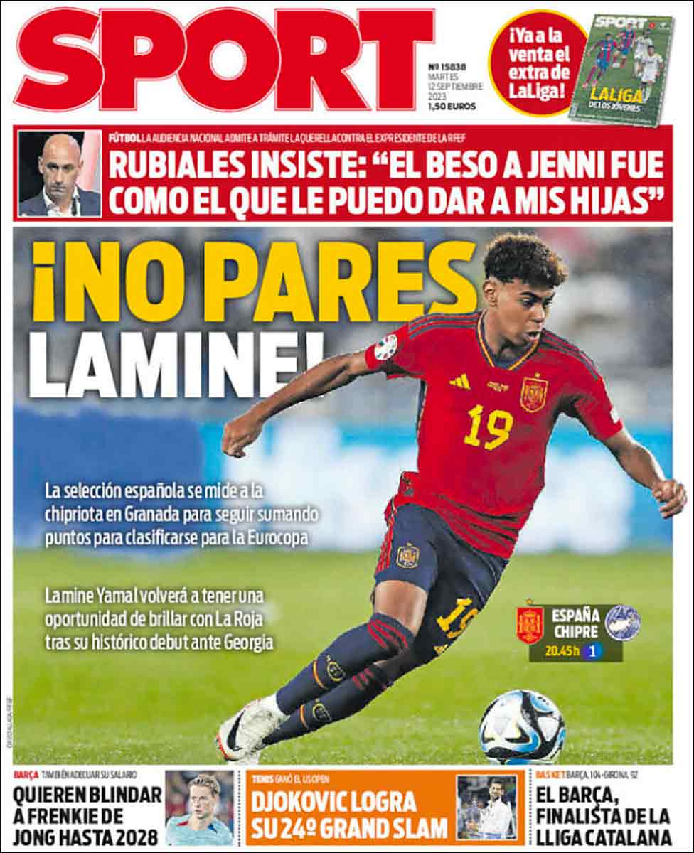 La prensa cataculé no viene muy diferente a Marca (¡oh, sorpresa!). Sport titula «¡No pares Lamine!». ¿Falta la coma del vocativo o se encuentra opacada por el cogote del niño prodigio? La experiencia nos hace inclinarnos por la primera opción.
