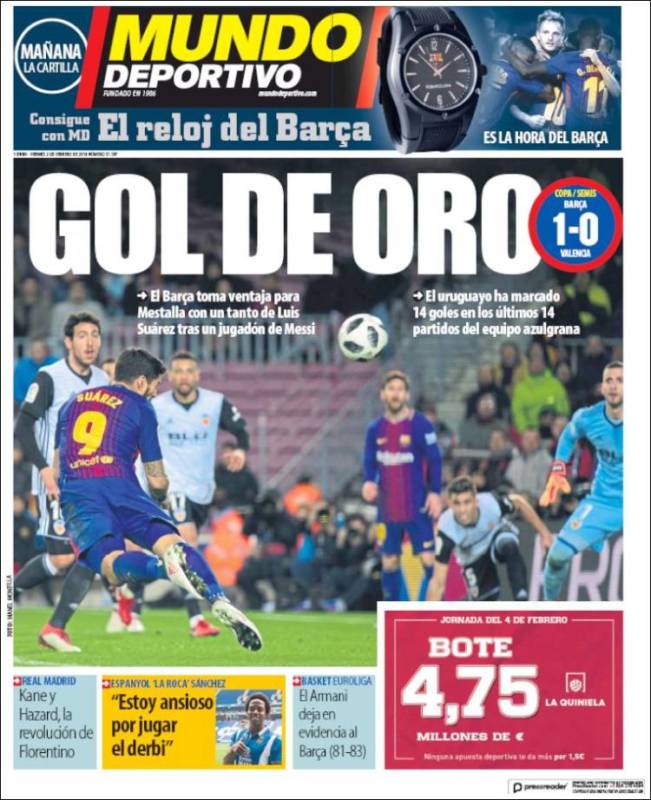 Y eso que la portada de hoy no está tan mal. Fijaos bien: se admite (en diminuto, eso sí, pero se admite) que Sergi Roberto (¿por qué no Sergi Robert si el director deportivo del Barça ha cambiado su nombre futbolístico de Roberto a Robert?) debió ser expulsado en el Barça-Valencia de Copa. Solo dos pequeñas pegas: ¿por qué en pequeñito y por qué no se presentan, ni en la Ouija ni en ninguna otra parte, estos favores al Barça como la pasmosa tendencia que evidentemente constituyen?