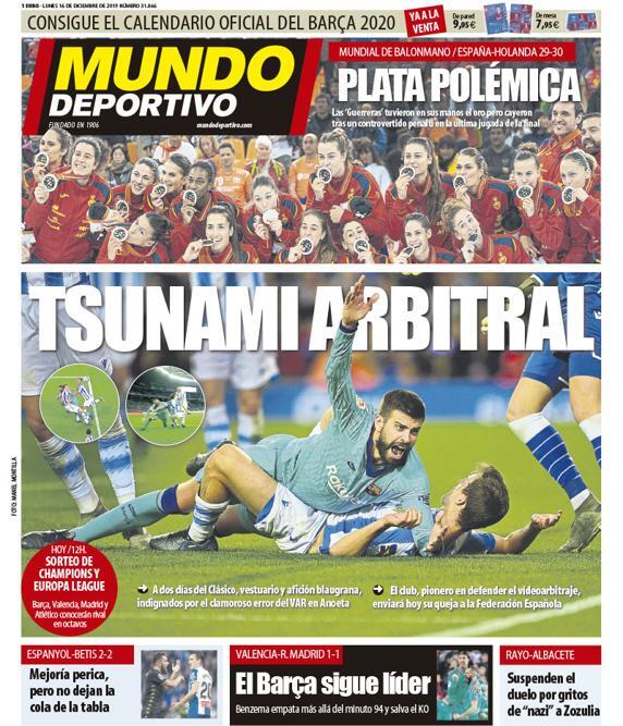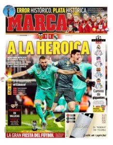 La prensa madrileña, que no madridista, se hace eco en su portada del no penalti a Piqué, y con el Madrid callados como....lo que son. Hala Madrid
