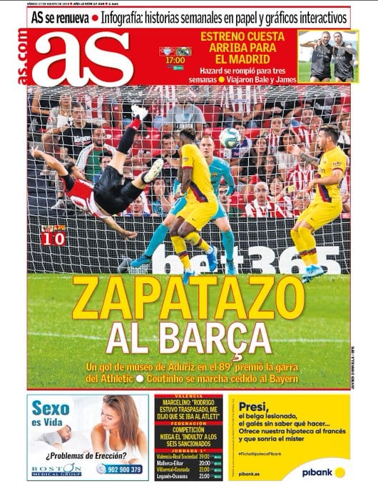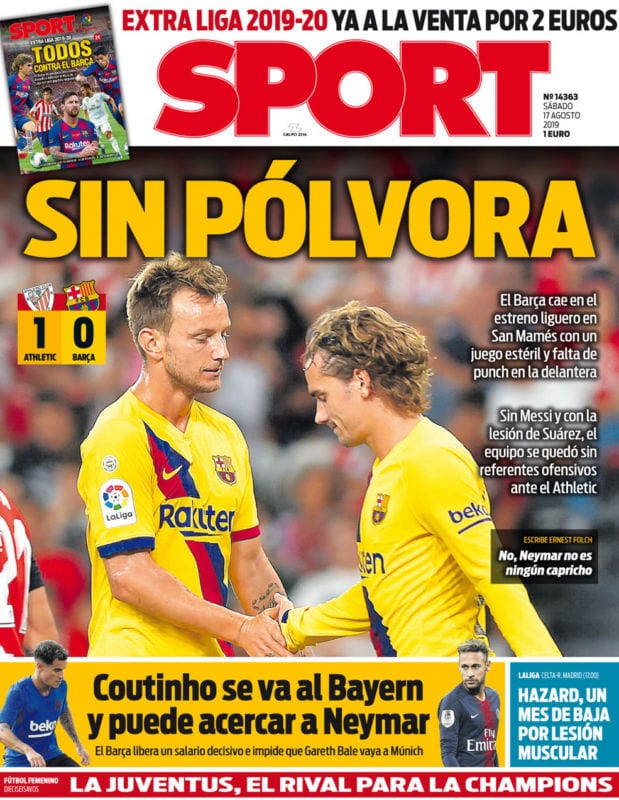 Creo que la frase en el cintillo inferior de Sport, para acompañar la noticia de Coutinho, es digna de enmarcar en los anales de las bajezas y desvergüenzas de la prensa deportiva: "El barça libera un salario decisivo e impide que Gareth Bale vaya a Múnich". Como si el hecho de que el Madrid no pueda salir de Bale sea lo mejor que le pueda pasar al Barcelona. Hay que ser muy desahogado y perverso para escribir algo así.