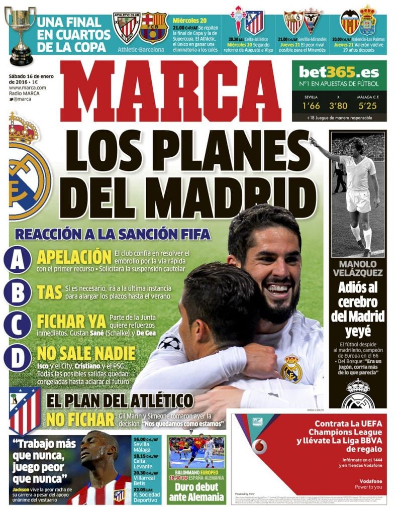 Aunque sí nos importe saber qué ocurrirá con la sanción de la FIFA y cuáles sean los planes del Madrid al respecto, tal y como anuncia la portada de Marca, también tal asunto nos pasa hoy desapercibido ante la auténtica y aciaga noticia del día. Manolo Velázquez fue (es) una de nuestras leyendas, entre otras cosas por liderar al equipo en la sexta Copa de Europa, aquella contra el Partizán. Manolo Velázquez jugó nada menos que doce temporadas en el Madrid, llevando finura técnica y creación de juego al centro del campo. Y todo esto es lo único importante hoy, amigos. Desde aquí queremos honrar su figura, agradecerle su contribución a la "historia que tú hiciste" y enviar nuestras condolencias a sus familiares y amigos. Estamos de luto, y de negro se nos tiñen hoy las portadas, aunque cometan la irreverencia de venir a todo color. Descanse en paz, Manuel Velázquez Villaverde.
