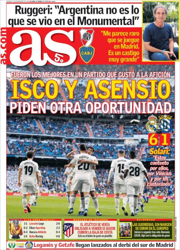 * Marca: "Isco y Asensio ganan puntos".
