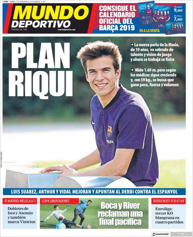 Por otra parte, ojo que el equipo del Régimen puede estar tanteando enchufar hormona a otro chaval: dice Mundo Vomitivo sobre Riqui Puig que "..ahora se trabaja su físico" y además "mide 1,69 pero, según los médicos, sigue creciendo y se busca que gane peso, fuerza y volumen".