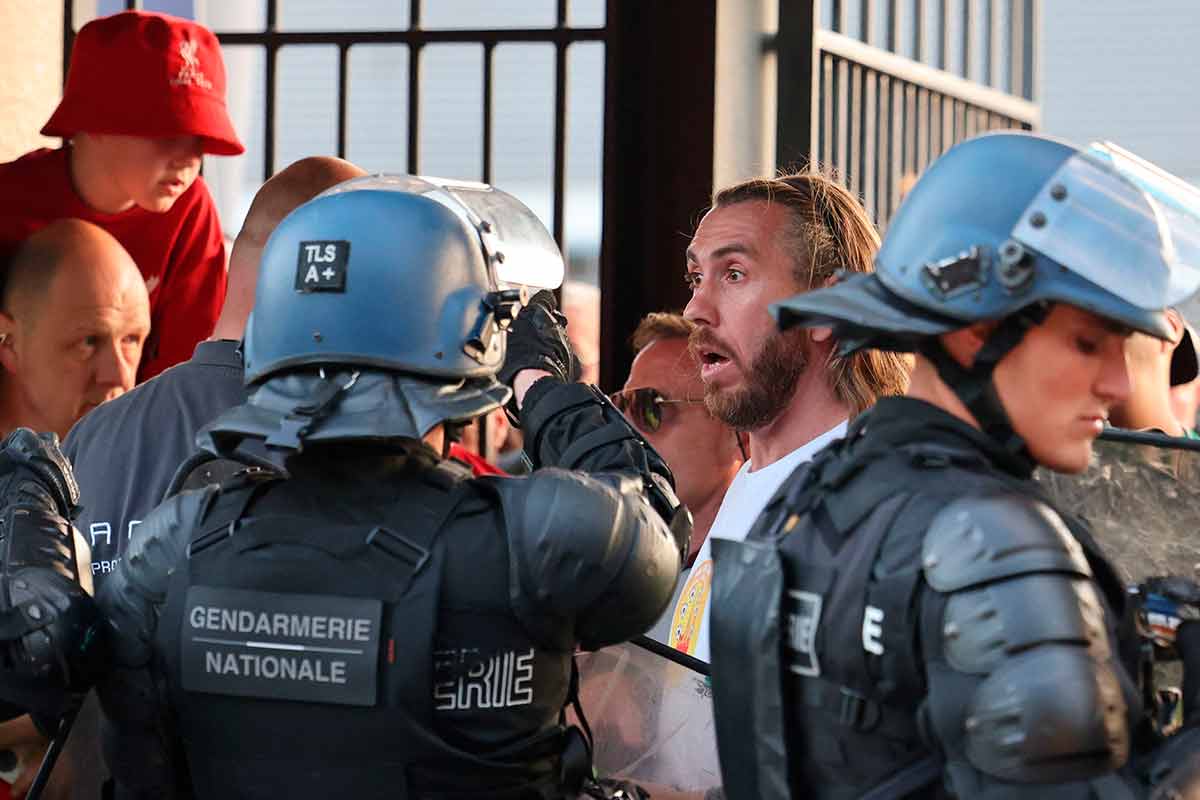 Nous arrivâmes ainsi à la première zone de contrôle, c´était déjà un chaos absolu dans lequel des centaines de personnes (il était 7 heures de l'après-midi) se pressaient pour franchir pas plus de 7 ou 8 tourniquets. Bien sûr, il y avait aussi des fans de Liverpool parmi nous. Ce qui était une autre faille de sécurité grave. Je dois dire que ni pendant la journée où nous nous sommes promenés tranquillement dans Paris, ni dans le stade, je n'ai vu un seul mauvais geste ou un quelconque incident de la part des supporters des Reds. Les incidents, et mon témoignage coïncide avec celui de tous les témoins, c'est que les incidents ont été perpétrés par des jeunes français majoritairement d'origine maghrébine.