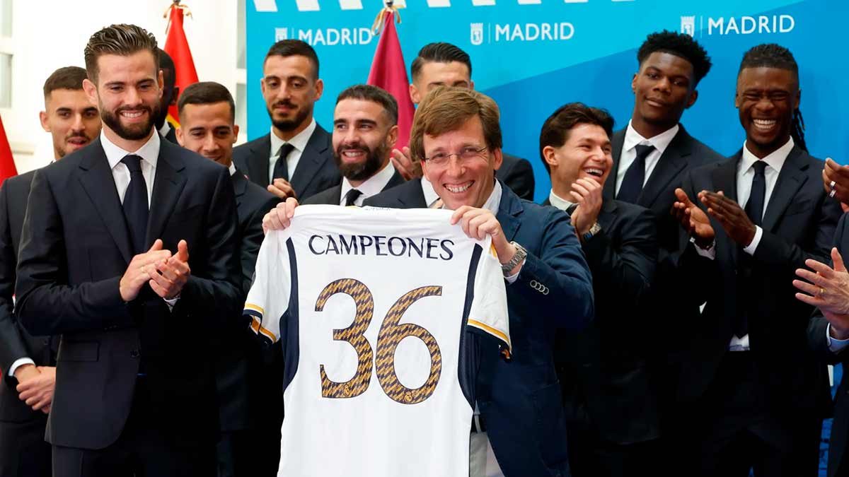 11:17. A Rodrygo se le van las palabras hacia la Champions a pesar de que le insisten en que es su tercera liga ya. Todos firman en el Libro de la Comunidad de Madrid y salen al balcón. Con sus trajes y sus saludos se asemejan a hombres de estado, sólo que en esta cumbre internacional todos representamos a la misma nación. Ancelotti toma el micrófono y, aunque su estilo es más de crooner, pone a las masas a cantar a capella el himno como si fuera Freddie Mercury en Wembley (oh, precisamente). Las hordas reclaman a Joselu y Luka, cuyas palabras micrófono en ristre son acogidas con un "Modric, quédate" por las masas y con un sollozo ahogado por el cronista. Reclaman también el Balón de Oro para Vini, que se asoma y azuza a las masas para que canten. Hasta Jude agarra el micrófono y demuestra que habla español como tú y como yo, sólo que con los brazos abiertos. Hablan Kroos, Courtois y Rüdiger. "¡El loco está aquí!", dice de sí mismo este epitome de lo cool. Su condición de showman obliga a obligar a todos los demás a hablar también, a colleja limpia. No se salva ni el apuntador, y allí quien más quien menos se acuerda de la Quince. Hemos venido aquí a decir que venimos dentro de tres semanas.