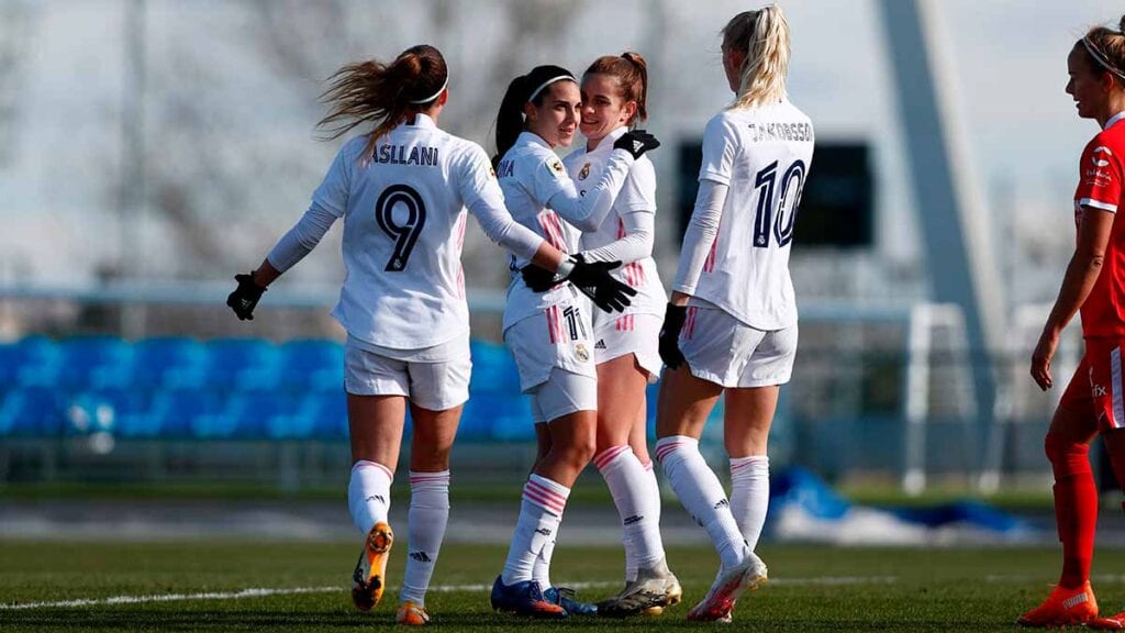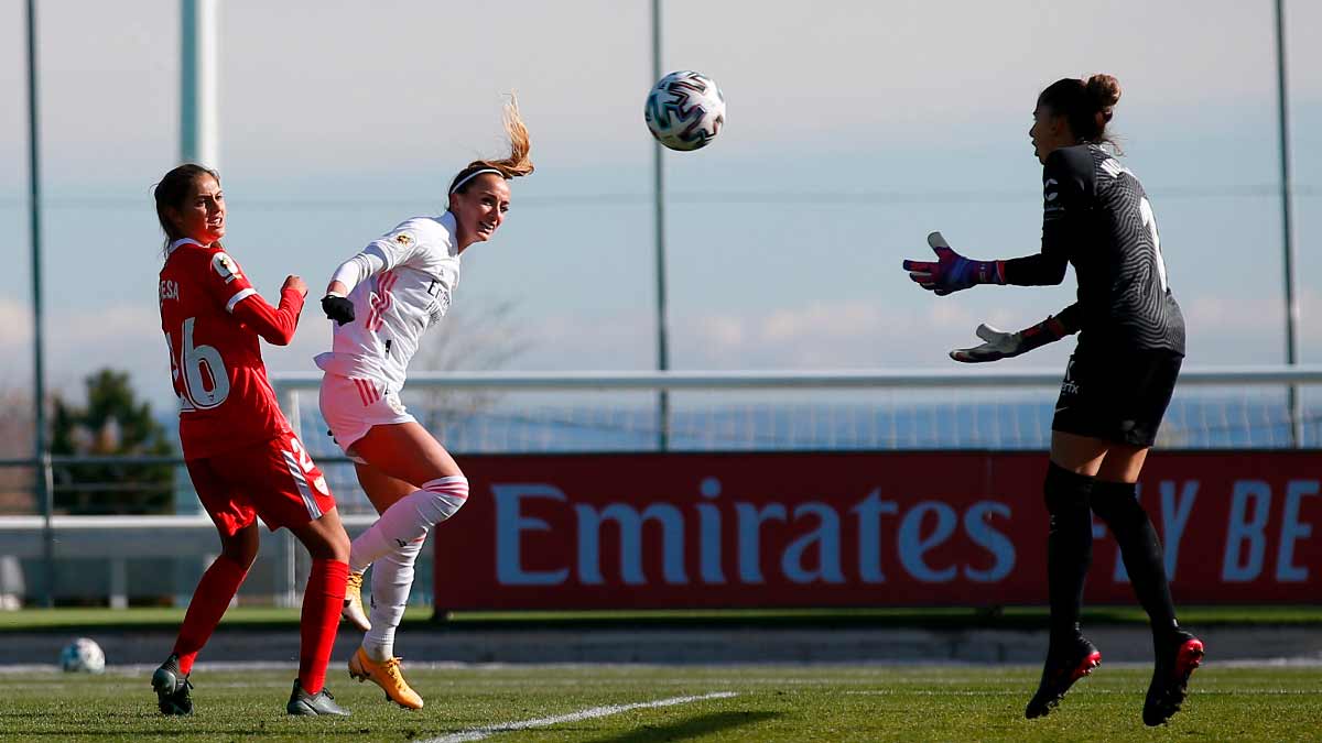 Hasta el descanso, las blancas firmaron la mejor primera mitad de lo que va de temporada. Si bien la tibieza e imprecisión de las rivales ayudó, el equipo de David Aznar fue un torrente de fútbol ofensivo que pudo golear. El esquema 4-3-3 en el que Maite Oroz queda custodiada en el centro del campo por Teresa Abelleira y Aurélie Kaci funciona, el balón rueda y el tridente de ataque cuenta con numerosas oportunidades para hacer daño. Una y otra vez llegó el Real Madrid a los dominios de Noelia Ramos, y sólo sus paradas permitieron a su equipo permanecer en pie.