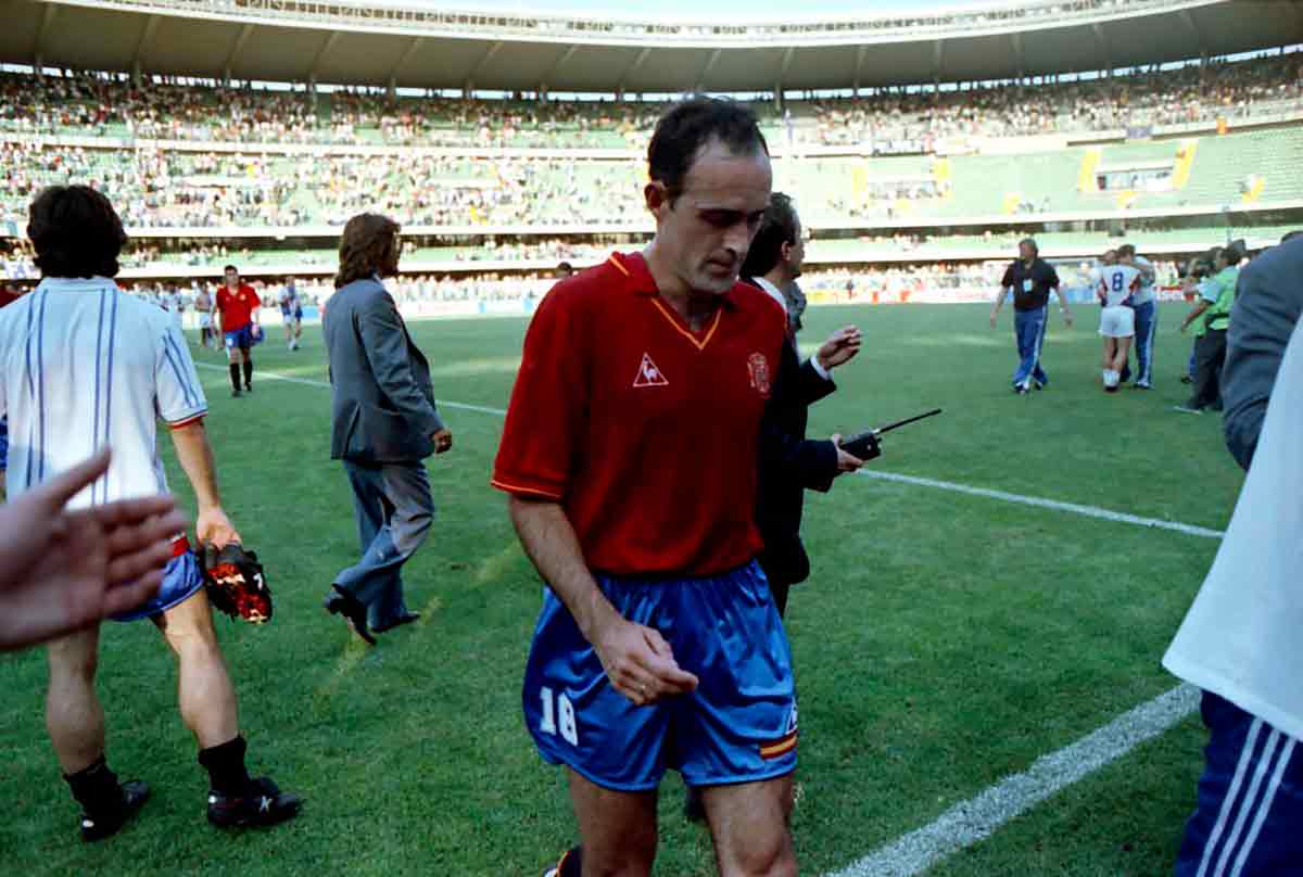 Enseguida analizo la disposición táctica de Luis Enrique, ha vuelto a sacar a Gallego de libre y a Jose Mari Bakero de falso nueve. Górriz juega por Laporte que tenía que volver a Francia para recoger el abono transporte. La columna vertebral de la selección formada por estos tres jugadores es complementada por Tomás Reñones, Tendillo, Sergi Barjuan, Hierro, Rafa Paz, Beguiristain y Eloy Olalla.