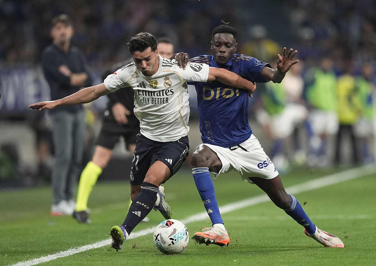 Y, sin embargo, a los nuestros les sigue costando la genialidad individual al borde del área rival. Y que salga bien, claro. Franco, con felicísimo desparpajo, lo intentó cien veces, y la mayoría no salieron; entre otras razones porque, al pisar área ovetense, los jugadores contrarios tenían orden de aplacarlo de tres en tres, aprovechando que De Burgos estaba De Cañas. Rodrygo y Vini lograron llegar más lejos en esas tentativas individuales. Y alguien debería explicarme por qué Brahim ha dejado de arriesgarse al uno contra uno esta temporada; hoy es mucho más eficaz como jugador de equipo, sí, pero hemos perdido, confío en que momentáneamente, uno de los metales escasos del fútbol moderno: el talento de la individualidad. Quiero suponer que no lo intenta porque no se ve con la condición física o moral necesaria para salir con éxito del lance, pero haría bien el Madrid en llevarlo al taller cuanto antes, porque sospecho que, titular o suplente, volverá a ser determinante esta temporada, si vuelve a su mejor versión.