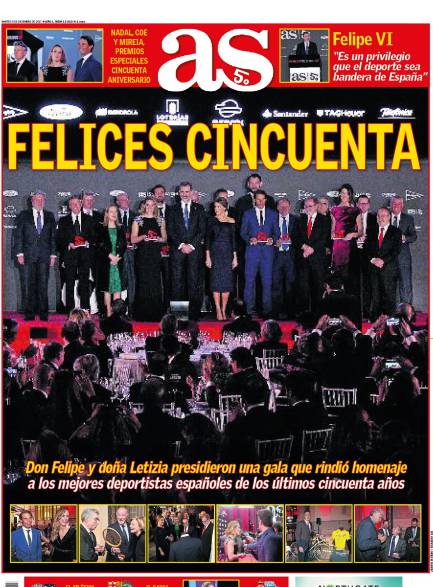 La Galerna quiere felicitar a AS con una felicitación prorrateada para aquellos años en los que AS fue una buena, una excelente publicación. En AS continúan, además, muchos excelentes profesionales que no tienen ninguna culpa de la deriva irracional de la línea seguida. Nuestras felicitaciones para ellos.