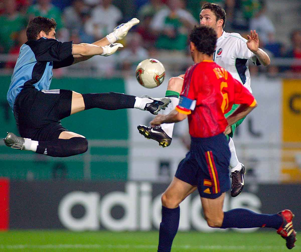 Pero España no ganó el Mundial, a pesar de todas aquellas cosas. De aquel Mundial recuerdo, sin embargo, momentos que como fotogramas o instantáneas se han quedado grabados en mi mente. Me molestaba que no lo diera Televisión Española, era la primera vez que algo tan grande no lo iba a escuchar con la voz de José Ángel De la Casa. No iba a estar Míchel tampoco, en su lugar entraron en mi vida la cacofonía ridícula de JJ Santos y la agradable sobriedad de Antonio Luque. Sobre todo, recuerdo los octavos de final contra Irlanda y los cuartos en Seúl frente a Corea. Era verano y hacía un calor de mil demonios. Eso no era extraño aunque ahora coloreen los mapas de rojo sangre y todo sean “olas de calor”. Aquella tarde sudé tanto que me pegué al sofá. La tanda de penaltis no pude verla porque me encerré en mi habitación. Al terminar, con Casillas como héroe, me puse la camiseta de la Eurocopa del 2000, regalo de Reyes de ese año, y me di un paseo por la playa, ufano y todopoderoso como sólo lo puede estar un niño después de ganar un partido de fútbol.