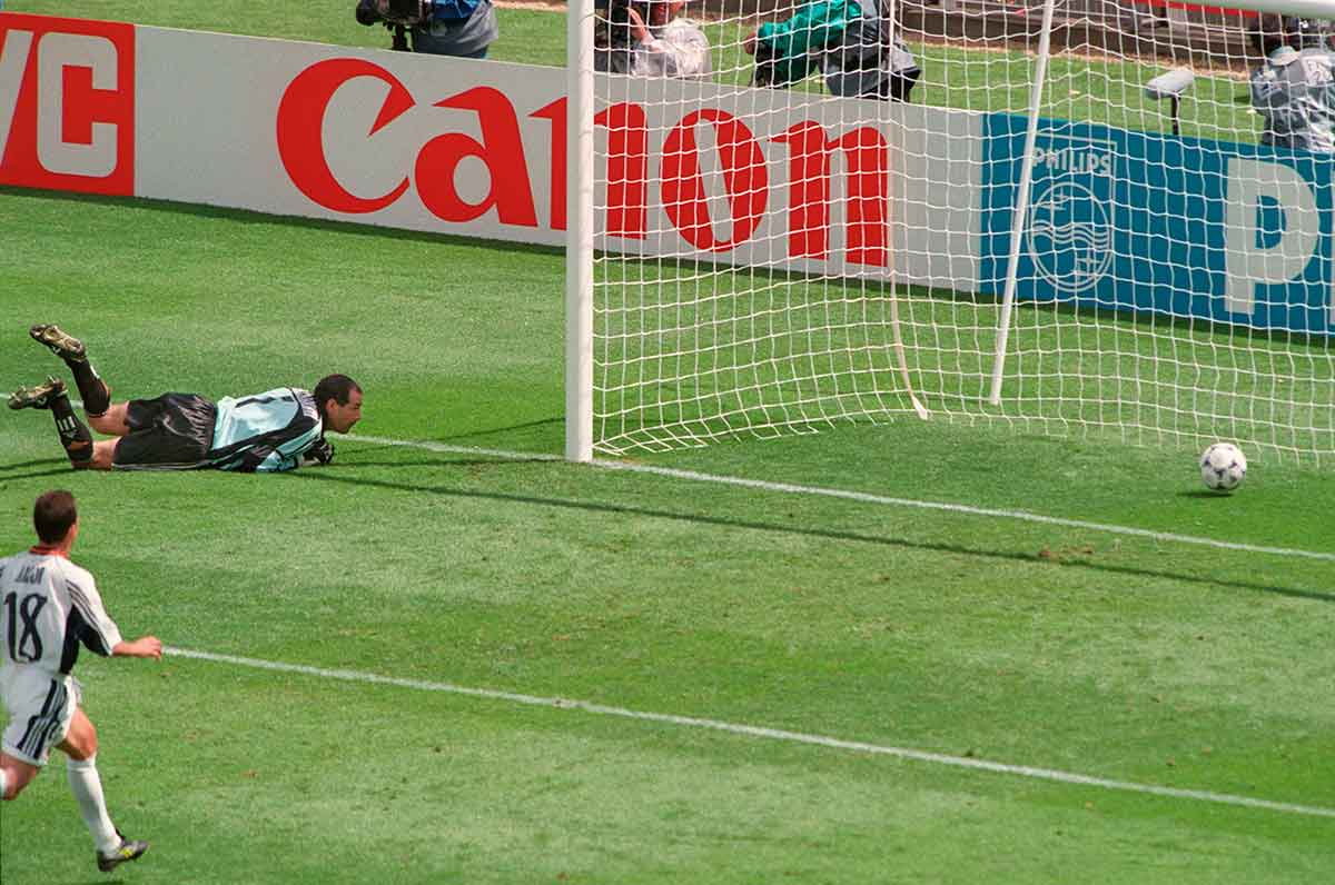 Por supuesto, seguí viendo el Mundial. Recuerdo especialmente el Argentina-Holanda y el gol de Bergkamp, que me fascinaba. Era como un torero, un bailarín, su técnica y su capacidad de danzar sobre la pelota y sobre sí mismo, como la muñeca de una cajita musical, sólo la ha heredado luego Benzema. Recuerdo el gol de Owen a los argentinos y la expulsión de Beckham, la tanda de penaltis entre italianos y franceses y los goles de Noruega a Brasil, la favorita suprema, absoluta, el equipo de videojuegos que mostraba síntomas preocupantes de cansancio. Cuando los brasileños eliminaron en penaltis a Holanda en semifinales y se clasificaron, como era casi una obligación, lo que todo el mundo esperaba, para la gran final de París, recuerdo a Taffarel de rodillas siendo abrazado por una piña amarilla. Taffarel me llamaba la atención por el nombre, que me sonaba a italiano, y por su color de piel: era un gigante blanco, blanquísimo, en una selección café con leche.