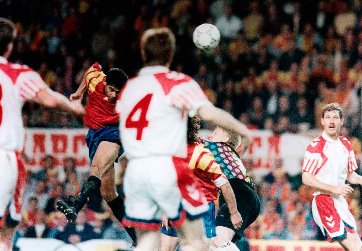 Como digo, durante ese Mundial de Estados Unidos yo cumplí seis años y mis referencias futbolísticas todavía eran vagas, incipientes. Era del Madrid porque mi padre nos decía que teníamos que serlo, pero el Madrid apenas era nada todavía, unos hombres de blanco con tendencia a hacerme llorar en confusas noches europeas. Sin embargo el color blanco ya era la nota predominante, el elemento identificativo, lo que se me quedó en la habitación interior de mi cabeza. Unos hombres de blanco luchando por abrirse paso en la jungla de mi aturullada percepción del mundo. Por supuesto, la idea de España o de selección nacional no tenía todavía ningún sentido para mí: mi padre me ponía a ver los partidos de España y para mí era como seguir viendo al Madrid. Puede que mi recuerdo más intenso relacionado con la selección datara de un año antes, más o menos, del partido que España, con diez jugadores, le ganó en Sevilla a Dinamarca, la campeona de Europa. En aquel partido Hierro marcó el gol de la victoria y debutó un portero que era del Madrid, Cañizares. Para mí, todo aquello pertenecía a un mismo todo, en mi mente era indisociable una cosa de la otra.