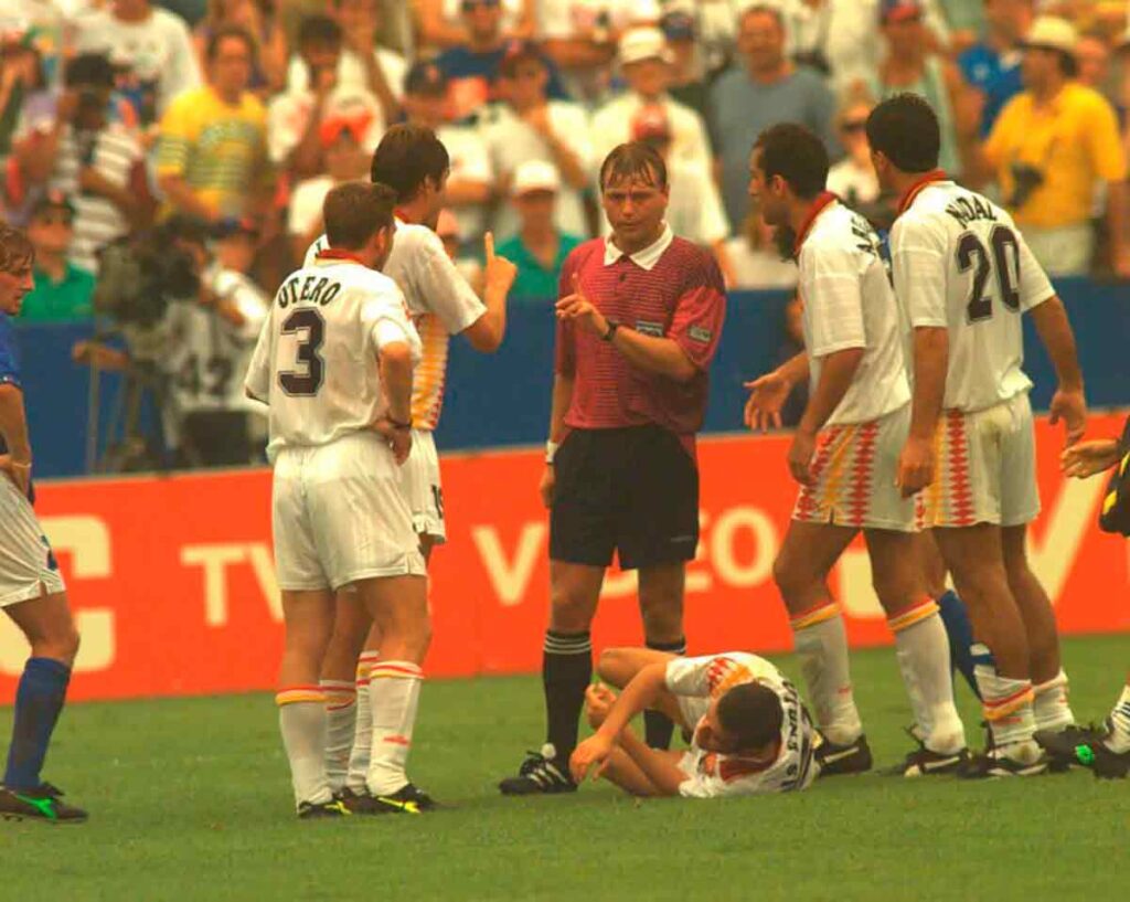 No perdió de cualquier manera. Perdió y lo hizo atrapado para siempre en dos situaciones que en mi alma impresionable dejaron una huella definitiva: el codazo a Luis Enrique y el fallo de Julio Salinas. En cierto modo, ambas acciones son dos categorías distintas de injusticia, dos versiones del destino fatal. Luis Enrique jugaba todavía en el Madrid y para mí era una cara que conocía, una cara que identificaba como propia. La había visto más veces, como la de Fernando Hierro. Sabía a qué atenerme con ella. De repente, en medio del partido, tras una pausa, en la tele salió esa misma cara llena de sangre, un borbotón que le manchaba la camiseta blanca. Vi a Luis Enrique agitarse enloquecido ante la cara imperturbable del árbitro, señalándose la nariz, de la que manaba un líquido oscuro, como el que sale de los muslos de los toreros cuando los empitonan en el ruedo. Creo que es la única vez que he visto a mi padre dolerse por Luis Enrique, reclamar justicia para él. Con seis años, la evidencia de lo incorrecto, del mal, era para mí tan clara, estaba tan a la vista de todo el mundo (¡un hombre con la nariz rota, rota por culpa de la alevosía de un contrario!), que el hecho de que el árbitro se negara a castigar al infractor me perturbó muchísimo. El mal campaba a sus anchas por la faz de la Tierra y los encargados de administrar la ley, de ejecutarla y de proteger, con ello, la pureza de la lid, la justicia, eran cómplices de esa impunidad.