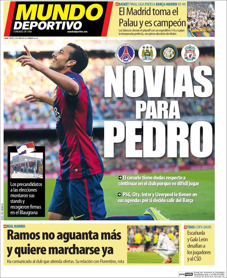 Las novias de Pedro copan la portada del diario del grupo Godó, y eso nos extraña más todavía, por cuanto teníamos entendido que el internacional canario acababa de casarse. De hecho, habíamos leído en alguna parte que la celebración de su boda había sido amenizada por un monólogo de Quique San Francisco. Siendo como ha sido ese el auténtico scoop del verano, no comprendemos por qué no se le da seguimiento a la noticia, y en La Galerna nos proponemos dar novedades al respecto. Quique San Francisco, supuesto madridista, debe dar explicaciones, y a fe nuestra que lograremos que las emita.