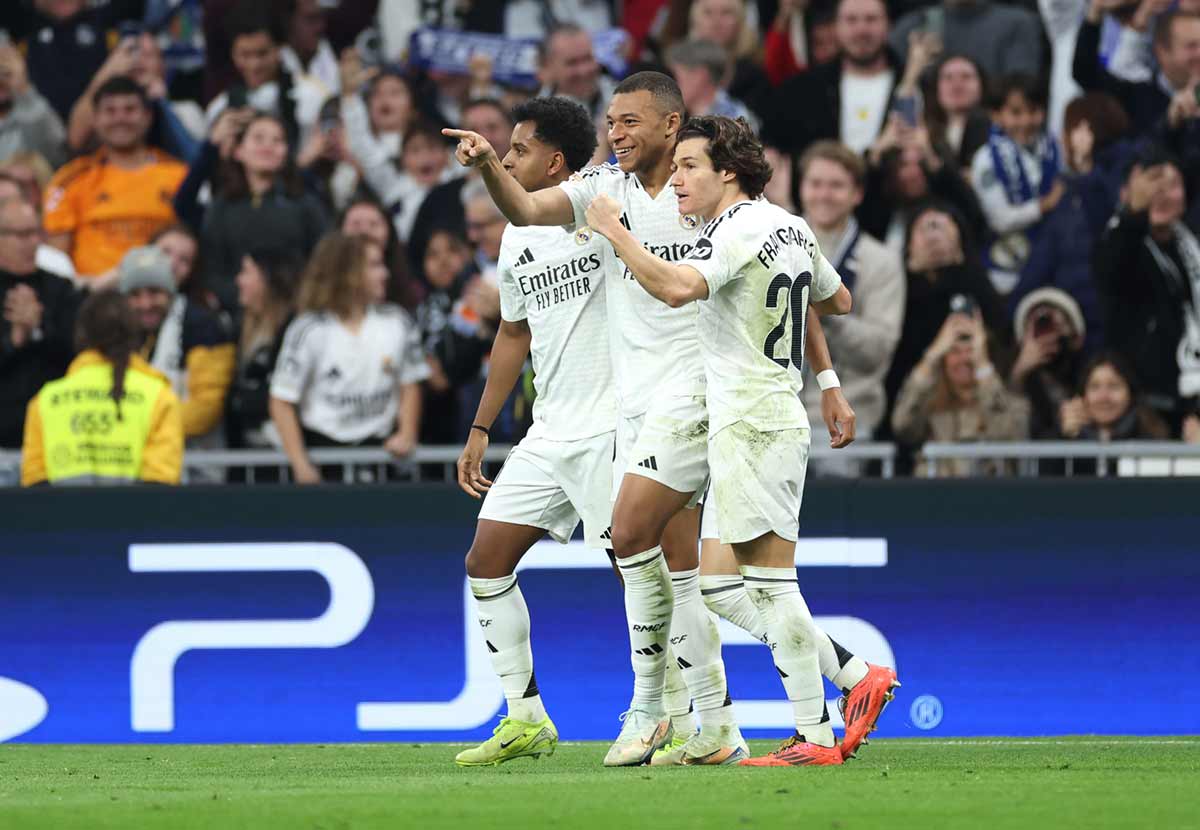 Falló goles cantados, pero generó juego y oportunidades, y marcó majestuosamente la más difícil de sus ocasiones. Tiene tendencia a caer en fuera de juego, y no solo ante expertos en dicha táctica como el equipo cliente de Negreira. Quizá le falta un punto de confianza en su propio arranque (que quizá ya no sea el del Mónaco, pero sigue estando ahí) para retardar un instante la implosión. Se lía en situaciones relativamente favorables para el desborde (relativamente para una estrella como él, porque siempre tiene un mínimo de dos rivales cerca), pero su compenetración con los compañeros asciende día a día, en particular con Bellingham y Güler. Ya es el máximo goleador en liga, junto a Vinícius, quien según se dice aún no se ha enterado de qué va el Real Madrid. Cuando se entere, los grandes mitos blancos tendrán que apretarse un poco más en el Olimpo.