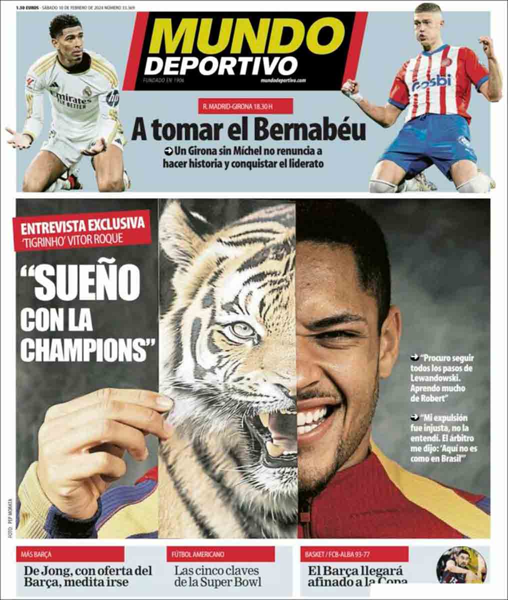 Deseando que paséis un buen día, os dejamos con las portadas de la prensa catalana, que anima sin disimulos al Girona, cosa bastante normal, por cierto, o dedica su portada a las garras de Vítor Roque, unas garras que ya han padecido algunas espinillas rivales.