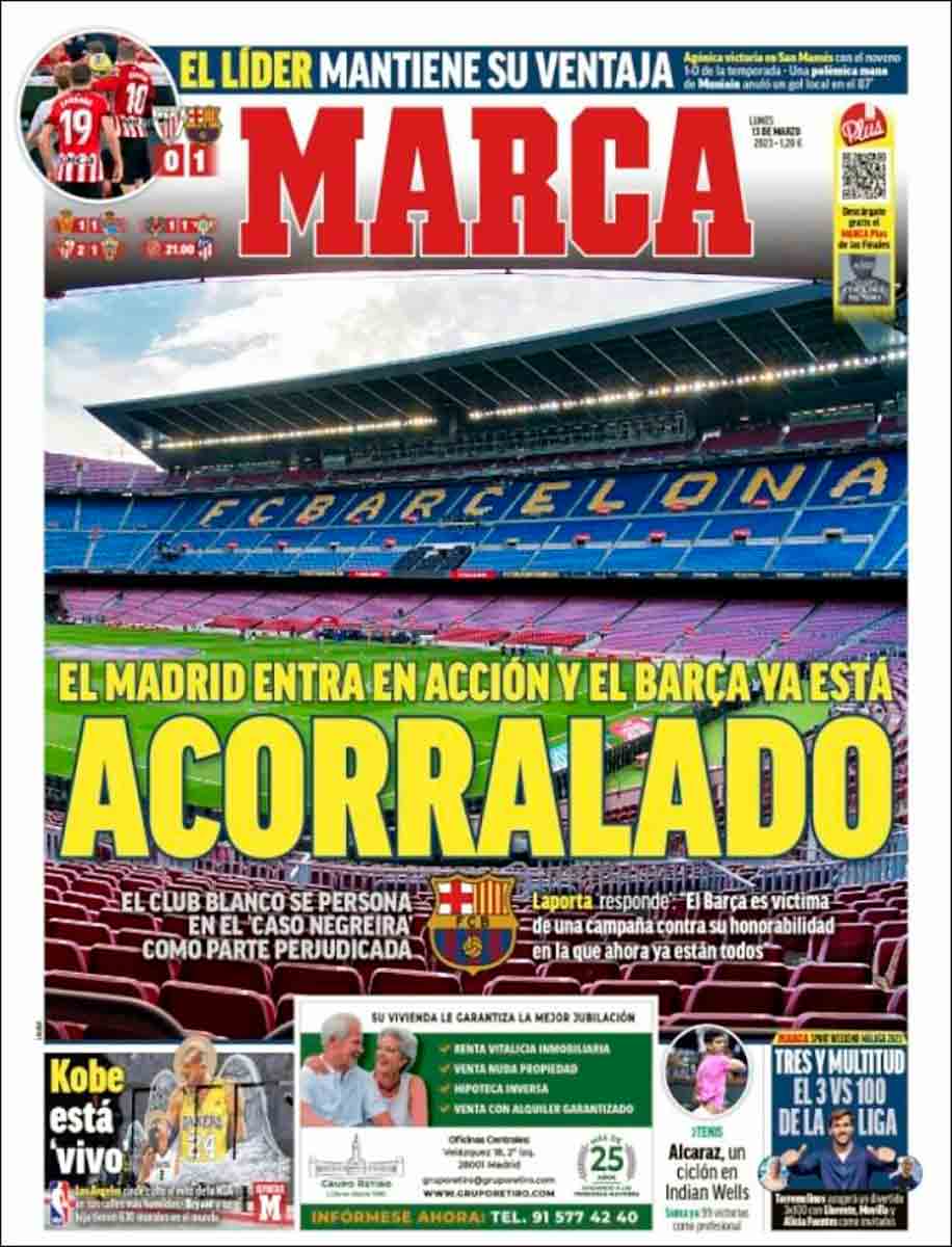 Marca resalta que el Barça está “acorralado”, como Stallone en el primer Rambo, y que está a dos telediarios de no sentir las piernas. El Barça, dice Laporta, y lo resalta Marca, es “víctima de una campaña contra su honorabilidad en la que ahora ya están todos”. Aquí en cambio no está siendo enigmático el cliente gold de Luz de Gas. Con ese “todos” se refiere al Real Madrid, por quien parece que se siente traicionado. Esa sensación de traición (o ese impostar que te sientes traicionado) queda reflejado a la perfección en este inefable tuit de un histórico del periodismo deportivo catalán como Francesc Aguilar.