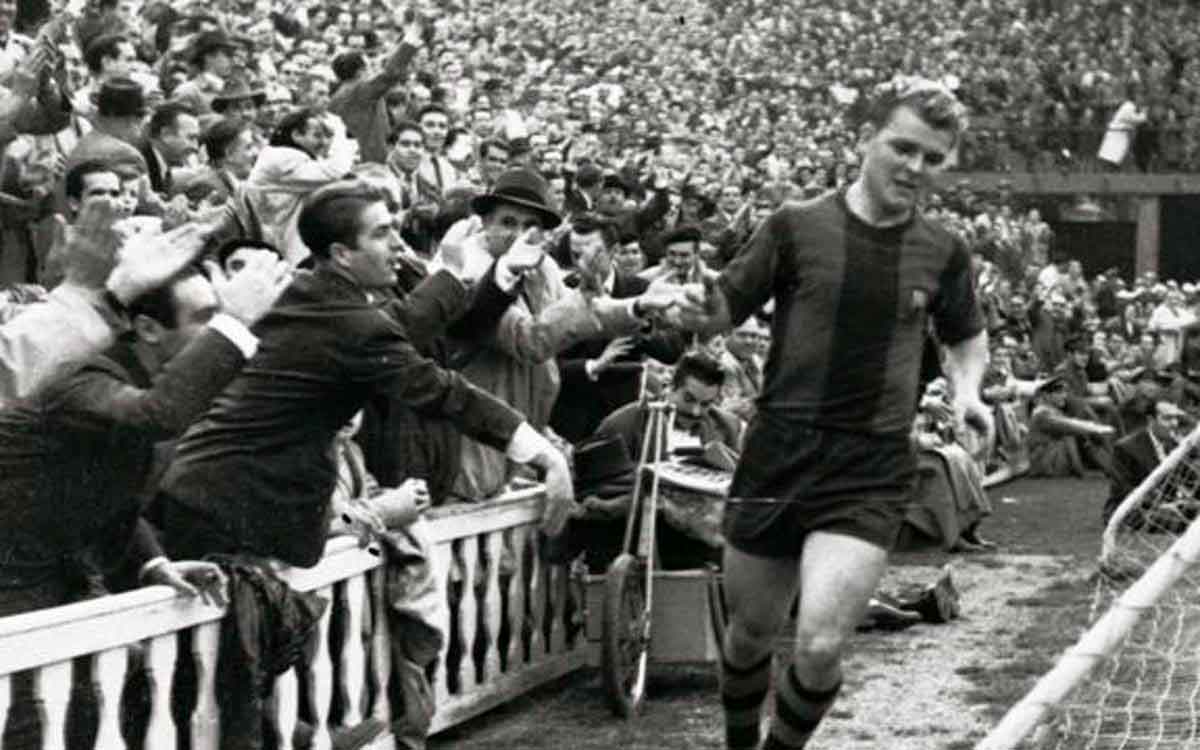 Tras su notable paso por el Coruña (antiguamente nadie lo llamaba Deportivo), Suárez fue fichado por el equipo catalán en 1954, con 19 años, y permaneció allí 7 temporadas. Llegó en plena etapa de esplendor del Barça de Ladislao Kubala, que venía de ganar 3 Copas de Generalísimo seguidas (1951 a 1953) y dos ligas (51-51 y 52.53), con los célebres Ramallets, Biosca, Segarra, Gonzalvo III, Basora, César, Manchón y compañía. Kubala era un dios absoluto en Barcelona y todos los historiadores coinciden en que fue por él por lo que el estadio de Les Corts se quedó pequeño y se emprendió la construcción del Camp Nou, que fue inaugurado en 1957.