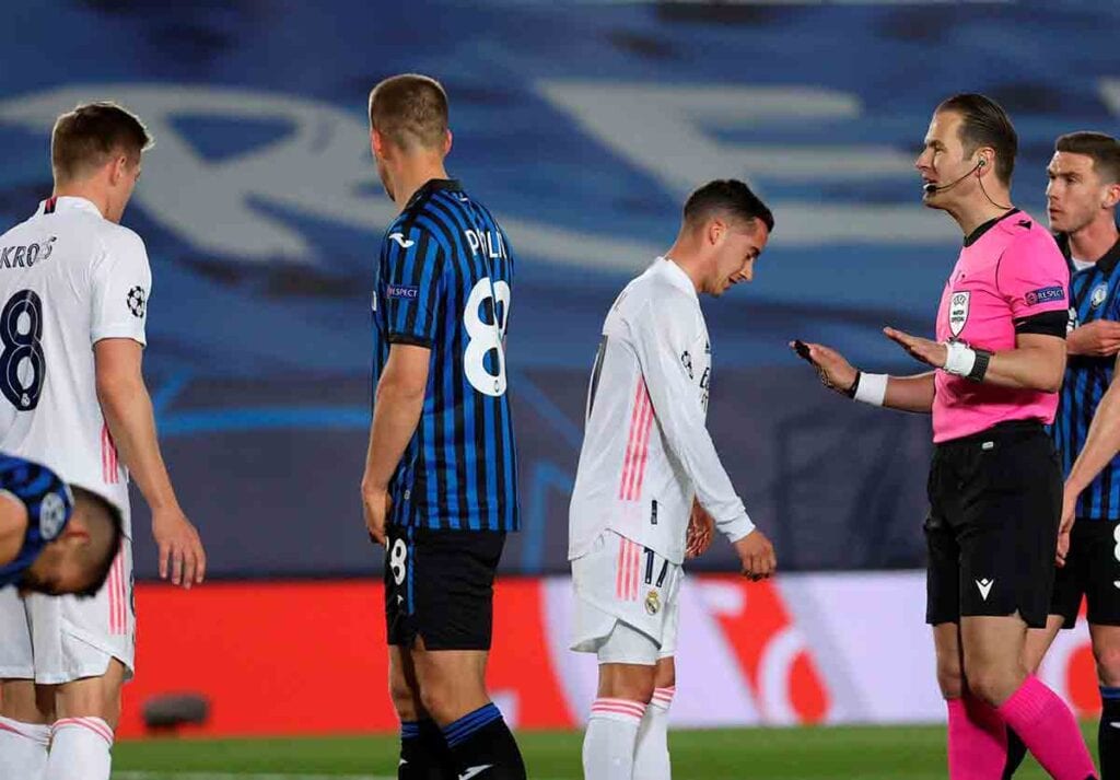 En la segunda parte decidió desenfundar las amonestaciones casi siempre en la dirección local. Valverde, Nacho y Kroos la vieron en el Real Madrid y Toloi en el 58' por el claro penalti a Vinicius en la Atalanta. También hay que añadir que Nacho se jugó la expulsión en un par de acciones, pero sobre todo en una apenas unos segundos después de ver la primera amarilla. En un salto golpeó con su tríceps en la cara de Ilicic y el neerlandés no pitó ni falta.