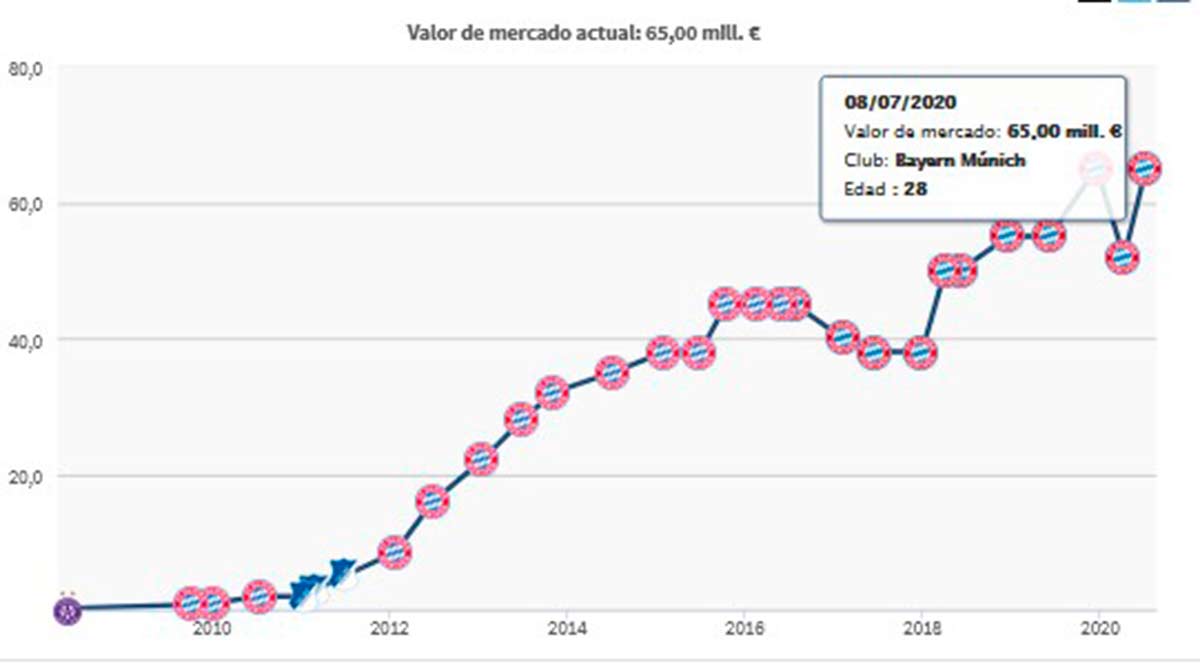 - Si David Alaba no estuviera en el último año de contrato, el Real Madrid tendría que abonar unos 65 millones por hacerse con una pieza así. Además, seguramente sería imposible ya que el Bayern Munich no lo vendería.