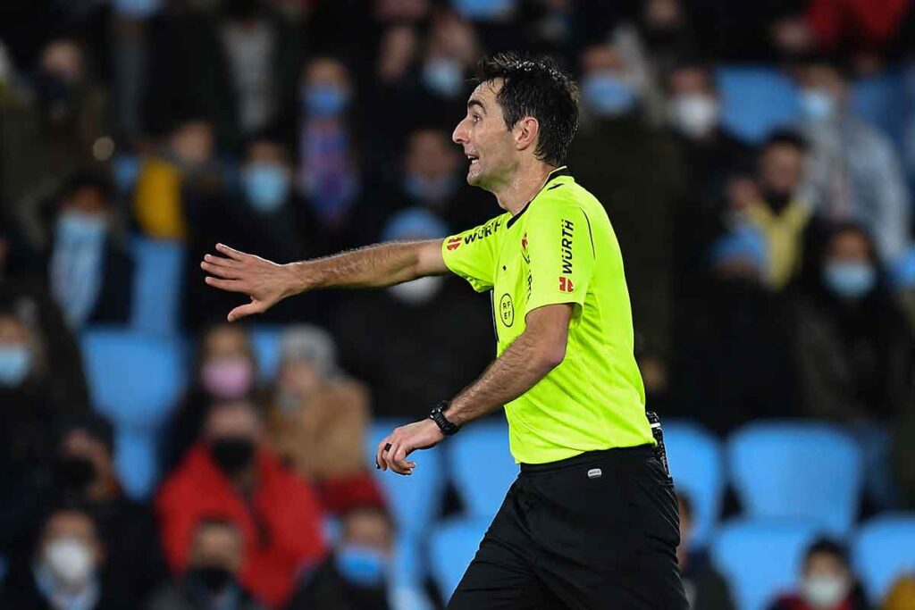 Comenzó mal el vasco, como suele ocurrir siempre que pita al Real Madrid. En el minuto 4 se inventó falta y una amarilla de Camavinga cuando el francés toca balón claramente. Por otro lado, Javi Martínez hizo tres faltas en 10 minutos, ninguna dura, pero por reiteración pudo ser amonestado. Se quedó en reprimenda verbal. Antes de irse los protagonistas a vestuarios hubo un penalti de Nacho Vidal sobre Rodrygo al pisarle en el muslo. Una jugada que además era roja por acción brusco-grave. Y también un gol bien anulado a Budimir por offside. Tampoco olvidamos una falta a Ceballos en la frontal que no se señaló.