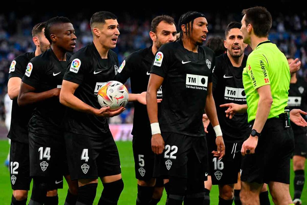 La segunda parte comenzó perdonando una amarilla a Fidel por claro agarrón de Modric. Dos minutos después, indicó penalti por derribo a Hazard. El trencilla dijo que por empujón. El VAR le avisó y corrigió su decisión porque efectivamente no había empujón, pero las imágenes dejaron claro el choque con la rodilla de Palacios a Hazard. No era penalti por empujón pero si por golpe. En el 53', 54' y 72' enseñó tarjeta a Militao por pegar duro abajo a Boyé, a Fidel por agarrar a Hazard y a Vinicius por una entrada por detrás a Milla respectivamente. En los últimos 15 minutos se reclamaron tres penaltis en el área ilicitana por mano. En el 75' Gumbau tenía el brazo encogido y pegado, por lo tanto nada objetable. En el 80', Pere Milla salta con los brazos abiertos y en el derecho le da el cuero. Penalti bien arbitrado por De Burgos. Por último, a Verdú también le impacta el balón pero está de espaldas cayendo desequilibrado tras un salto y sin ver el esférico. Una acción muy parecida a la de Militao contra el Sevilla el curso pasado y que no debe ser punible, pero si hay un criterio uniforme y se pita una vez, debe hacerse siempre. De Burgos la consideró mano natural. También se llevó Alaba una amarilla por entrada fuerte a Pere Milla en el 95'.