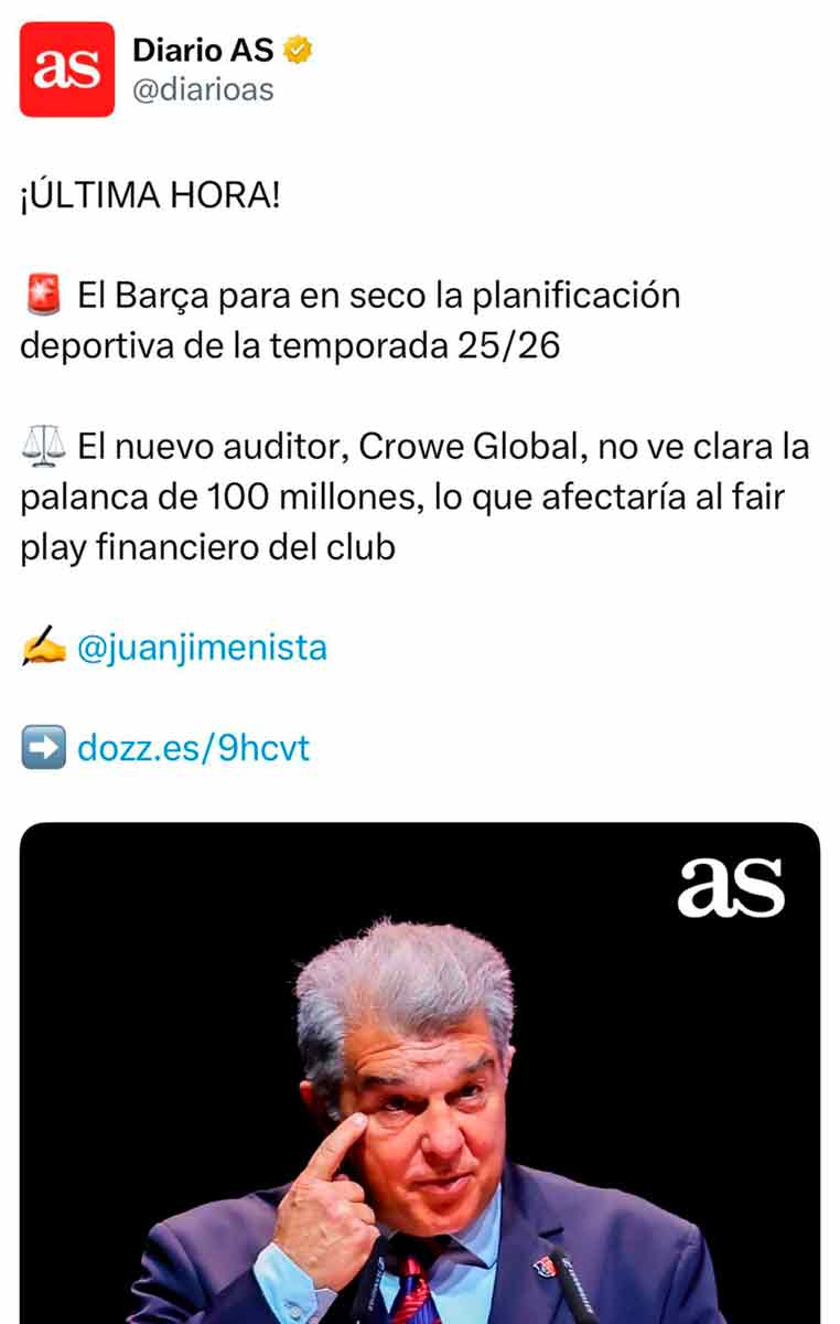 El tercer espermatozoide del día sí que alcanza una de las portadas, pero apenas en un faldoncillo de extrema discreción. Se trata de lo siguiente, también relativo al club cliente de Negreira y oportunamente desmentido por Toni Freixa, lo que confirma el extremo.