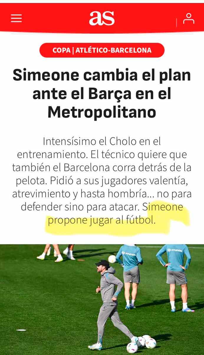 Y de la contranatural filosofía de ataque que, por primera vez, propone el Cholo ante el Barcelona, ¡qué decir! Nos sabemos la fábula del escorpión y la rana. Al final, solo aparecerá el miedo, porque es su naturaleza.