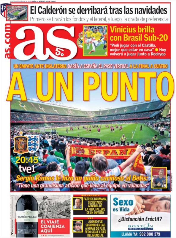 Por lo demás, esta noche juegan España e Inglaterra partido valedero para la Copa de las Naciones que Nadie Entiende del Todo Bien. Los de Luis Enrique (a quien hoy dedica Antonio Hualde un cariñoso artículo) convencieron en el amistoso de Cardiff y confían en dejar la isla del Brexit con el pabellón bien alto. El choque se disputa en nuestro estadio favorito de Sevilla, para el cual ha tenido Ramos palabras amables. Nos gusta. Todo madridista, de Despeñaperros para abajo, es un poco bético, malaguista y cadista. Estamos dispuestos a defender esta aseveración ante quien sea preciso.