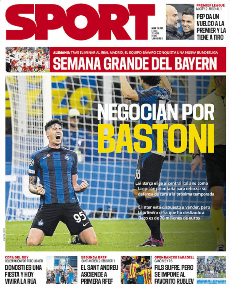 La prensa deportiva, no sabemos si porque todavía está desperezándose tras la final de Copa con el consuetudinario gatillazo del Atleti y los aún más consuetudinarios pitos a los símbolos de la nación y pancartas a favor de ETA, o porque ya da la liga por finiquitada, omite cualquier referencia en su portadas al campeonato del que aún restan siete jornadas.