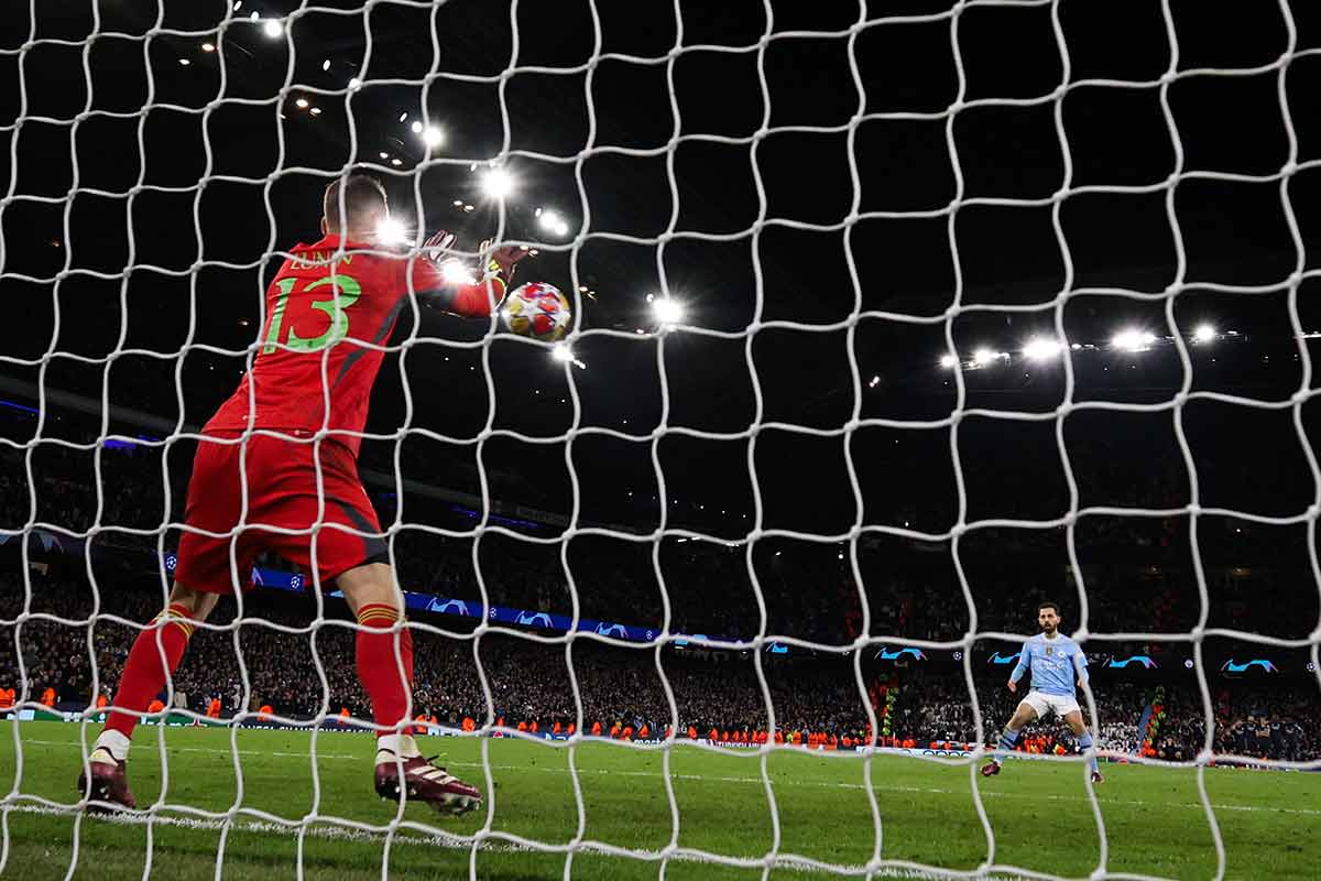 Sin embargo, el columnista siempre está obligado a rellenar su página. Por tanto, conviene armarse con una lupa y escudriñar los detalles, tratando así de encontrar los elementos novedosos dentro del parménico paradigma. Aunque en primera instancia pueda parecer una misión imposible, en realidad nunca lo es del todo. No en vano el Madrid suele obsequiarnos, por rocambolesco que parezca, con un perpetuo y circense “más difícil todavía”, incluso en aquellos aspectos reproducidos hasta la extenuación. Verbigracia: si las remontadas europeas, auténtico sello de identidad del club, se han logrado de todas las formas imaginables a lo largo de la infinidad de eliminatorias superadas en toda la historia de la entidad, en Mánchester se nos demostró que aún existe espacio para la inventiva. El Madrid remontó aquello que le faltaba... ¡una tanda de penaltis! Sublimando al extremo, al mismo tiempo, la propensión antes mencionada al protagonismo de los secundarios en el instante decisivo. En esta ocasión fueron hasta cuatro: Lucas Vázquez, Nacho Fernández, Antonio Rüdiger y, por encima de todos, la circunspecta figura de Andriy Lunin.