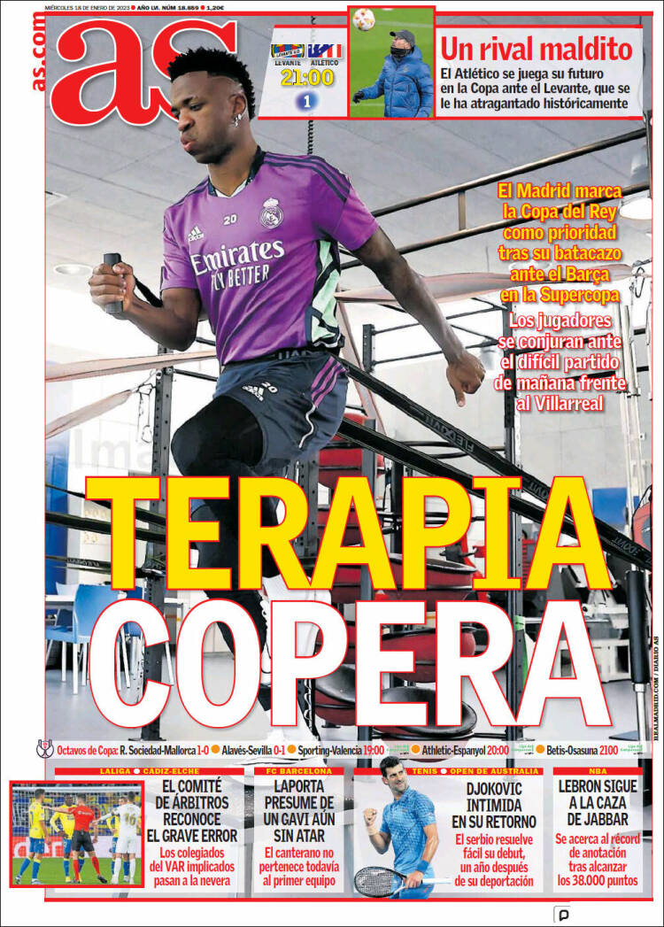 Por lo demás, queridos galernautas, ya sabéis que los de Ancelotti se juegan mañana la vida copera (otra vez) en La Cerámica, como innecesariamente nos cuenta As mientras la prensa cataculé está a sus cosas.