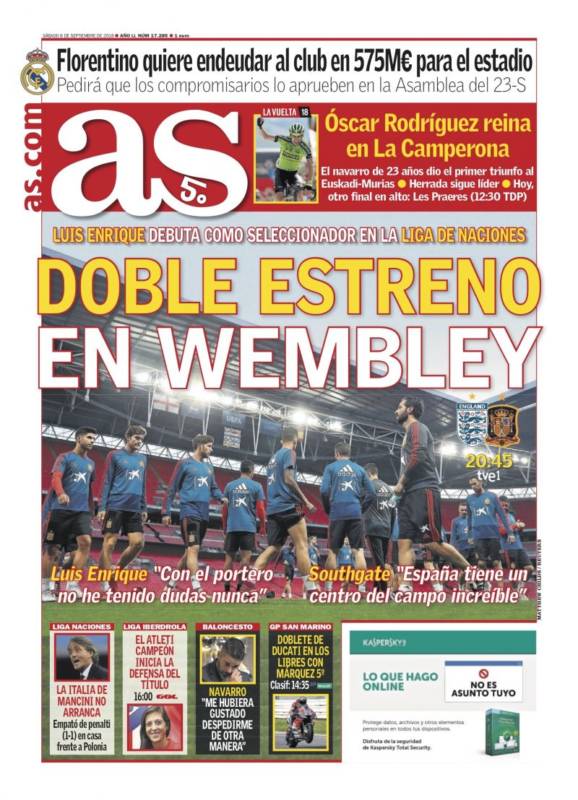 Buenos días. Este viernes, el diario 'Marca' amanecía con una portada en la que se intuían turbulencias en la portería de la selección española. La posición de guardameta parece ser la preferida de dicho periódico en los últimos años a la hora de buscar debates y enfrentamientos.