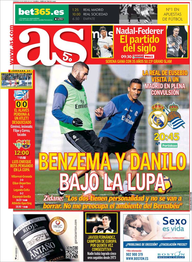 "La Real de Eusebio visita a un Madrid en plena convulsión", dice el periódico de Relaño sin el más mínimo afán alarmista, faltaría más. Puede que a algunos les parezca pelín exagerado eso de la convulsión, puede incluso que les parezca pelín feo eso de señalar a dos jugadores y ponerlos en la picota para el partido de esta noche, pero no se preocupen. Es lo que tiene el periodismo cuando se pone al servicio de una idea, de un afán, de un propósito. Es lo que tiene negarle el pan y la sal siempre a los mismos y que ya huela, que ya ni siquiera indigne porque es tristeza lo que provoca y propaga. Y no, por ahí no pasamos, amics del As. Podemos enfadarnos, torcer el gesto y preocuparnos, analizar críticamente lo que sea menester, pero tristezas las justas. Ser del Madrid, haber visto las cosas que hemos visto hacer al Madrid, hace ilegítima semejante caída. No es que no tengamos derecho a la tristeza, sino que tenemos el deber de su contraria.