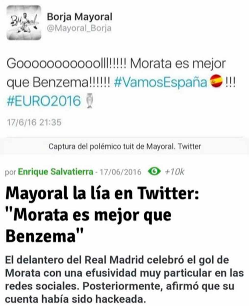 No es la primera vez que el delantero natural de Parla, a cuya localidad natal no faltará ahora quien quiera mandarle para hacer allí lo que estime oportuno, mete la pata de manera pública. Legendaria fue su actuación tuitera, siendo todavía jugador del Castilla, en referencia a un partido de la selección española. Arrobado por un gol de Morata, Borja tuiteó que este es mucho mejor que Benzema, metiéndose así en un jardín multicolor y demostrando, aunque luego afirmara risiblemente que su cuenta fue hackeada, que ocasionalmente es posible ser bocachanclas incluso sin abrir la boca (no las hay en twitter), ese bocachanclas 2.0 que tal vez Borja no sea, insisto, pero a quien la reincidencia ya empieza a asimilarle de manera alarmante. Quién sabe si no se reencontrará pronto con Morata, que no solamente es mucho mejor que Benzema sino que siempre ha soñado, como todo el mundo sabe, con jugar en la Roma.