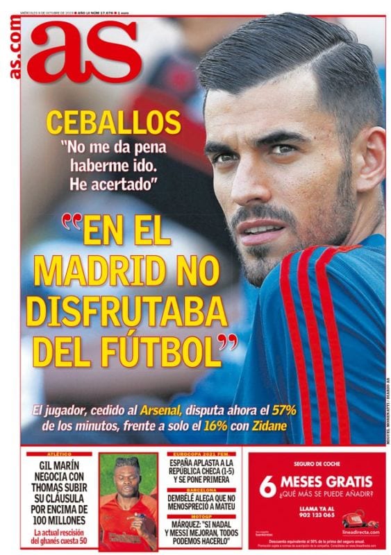 Lo peor de Ceballos es que no sufrió acoso y derribo en una entrevista para deslizar cierto rencor hacia el Real Madrid. Le bastó sentarse en sala de prensa para hacerlo. Las preguntas iban con picante, obviamente, pero tenía la opción de decir que ahora sólo piensa en el Arsenal o que del Real Madrid ya hablará cuando acabe la temporada. No lo hizo. Por eso es portada en 'La Ouija Today', que ha cambiado cosas, pero no tanto como pensábamos. Vieron carnaza y se lanzaron a por ella. Ceballos les regaló una primera página cargada de morbo y polémica. Error de Dani.
