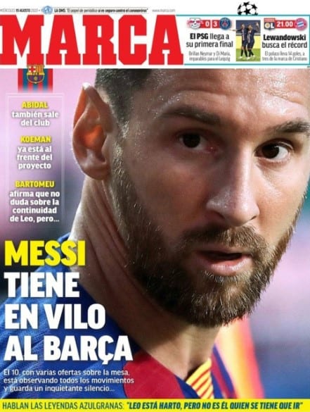 Messi, en efecto, tiene al Barça en vilo. El argentino podría optar por irse si no le convence el plan de D. Ronald, y tal cosa sería una desgracia a decir de varios veteranos blaugranas a quienes Marca cita en el faldón inferior. “Está harto, pero no es él quien se tiene que ir”. La zozobra es tal en Can Barça que nos preguntamos si el grueso de la afición culé opina lo mismo. Una cosa es que, como club, te tenga sujeto por las gónadas el mejor jugador del planeta (o así), y otra que quien de facto dicta los designios de la entidad sea un futbolista crepuscular, que da los últimos coletazos como una ballena varada y que ha contribuido con cuatro completas desapariciones sobre el campo a las cuatro eliminaciones consecutivas (Turín, Roma, Liverpool, Lisboa) más dolorosas y abultadas de la historia azulgrana. Hipotecarte por el mejor jugador del mundo puede ser hasta comprensible. Hacerlo por ESTE Messi es una cosa muy distinta.