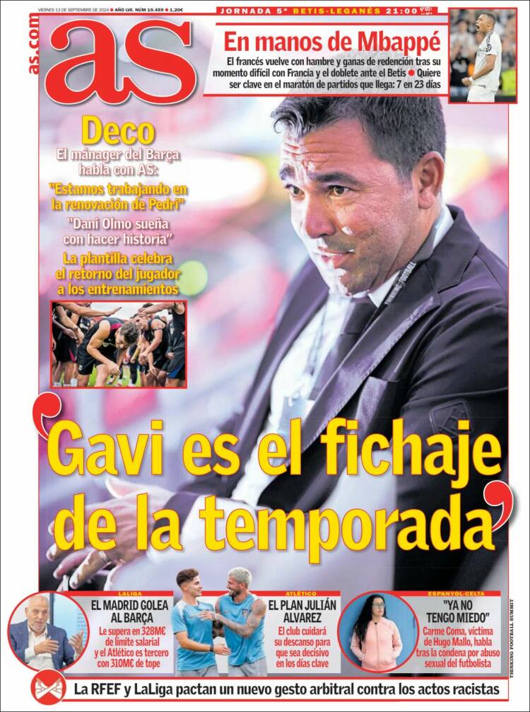 Los titulares de la entrevista de Deco en As están completamente desprovistos de interés. Imaginad cómo será el texto de la propia entrevista. Deco es un agente de jugadores que se ha mostrado encantado del ruinoso mercado de verano protagonizado por su club (cliente de Negreira) y que ha llegado a decir, en otra entrevista diferente, que Nico Williams no está en el club cliente de Negreira porque el club cliente de Negreira no ha querido. Sí, sí, sí, es un verdadero genio. También lo es Laporta, claro. Estamos a tres portadas de Sport (o de As, ya puestos) de que la culpa de que Nico Williams no esté en el Barça sea de Florentino Pérez. O del caudillo.