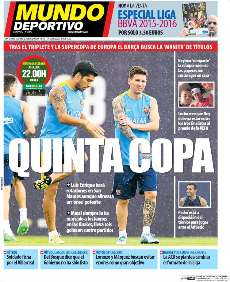 Quienes sí están ganando títulos son nuestros adversarios menos queridos, que esta noche van a dejar sentenciada (no tengáis la menor duda) la Supercopa de España. El Barça va a triturar al Athletic de Bilbao ante la atenta mirada de Mario de las Heras, que presenciará el partido en la tele con la vana esperanza (pero gracias por albergarla, Mario) de que los vascos den un susto a los blaugranas para poder traeros una crónica jubilosa.